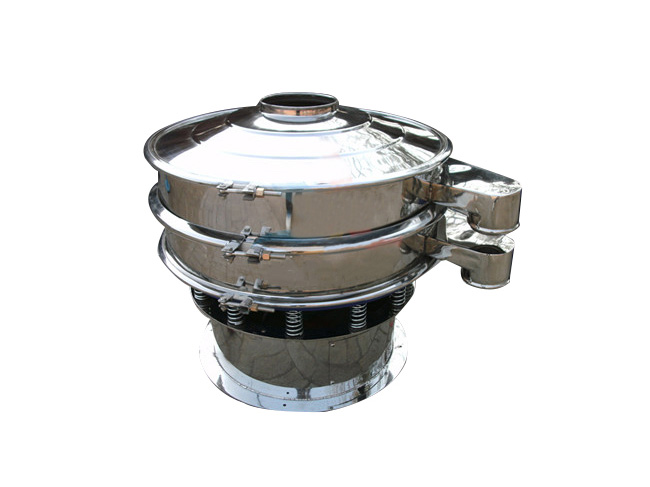 旋振篩(圓形振動篩)由立式振動電機作激振源,因為其上下端重錘安裝在發動軸兩側,使電機的旋轉運動轉變為垂直、水平、傾斜的三次元運動。  旋振篩產品特點:  設計精巧,耐用,適合任何粉類以及粘性液體的篩分?! 〔僮骱唵?,換網方便,易于清洗。  篩網無阻塞,粉末無飛揚?! ‰s質以及粗料自動排出,并且可以與給料設備、輸送設備配套使用,處理量大,生產效率高。  尺寸小,節省空間,易于移動。  易于養護,可單層或多層使用?! 『Y網設計合理耐用,換網只需3-5分鐘。  篩網可達5層,篩分出6種不同顆粒大小的物料